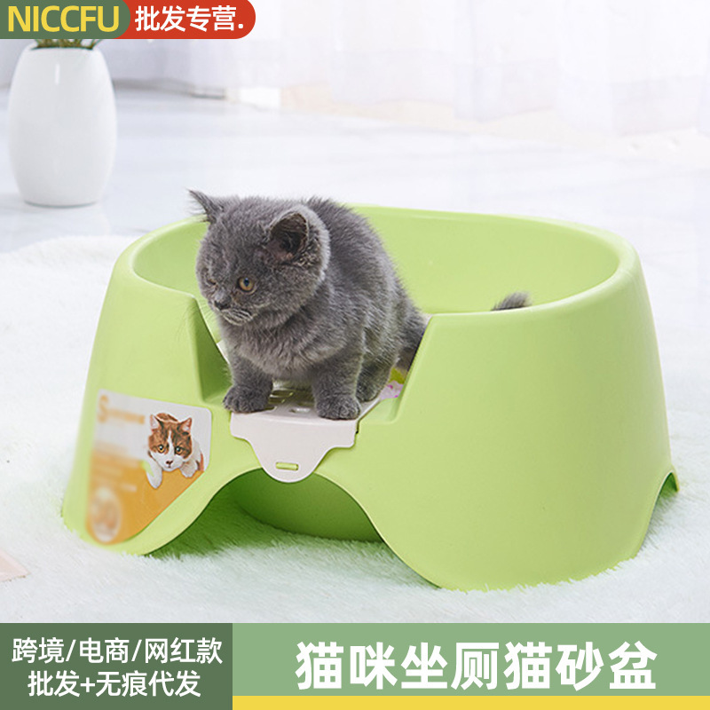 Kotak sampah kucing jongkok toilet kucing anticipratan dengan Sekop kotoran kucing semi-tertutup toilet hewan peliharaan pelatihan toilet kucing grosir