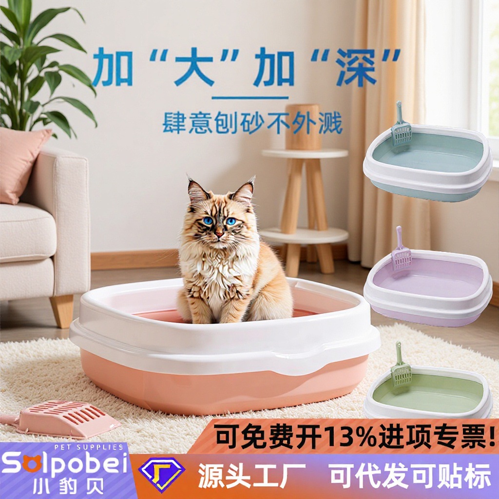 Kotak sampah kucing sederhana Anti percikan, kotak persegi panjang, kotak kotoran kucing semi tertutup, sarang kucing terbuka, sekop sampah kucing Gratis