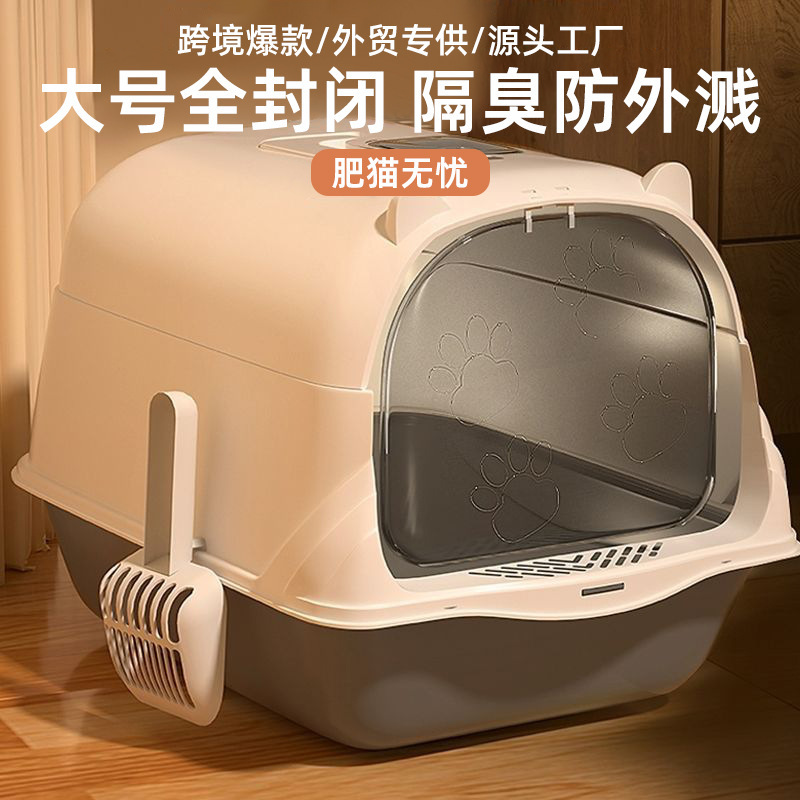 Kotak sampah kucing peliharaan toilet kucing toilet toilet kucing besar toilet tertutup penuh deodoran antipercikan kotak sampah kucing baskom