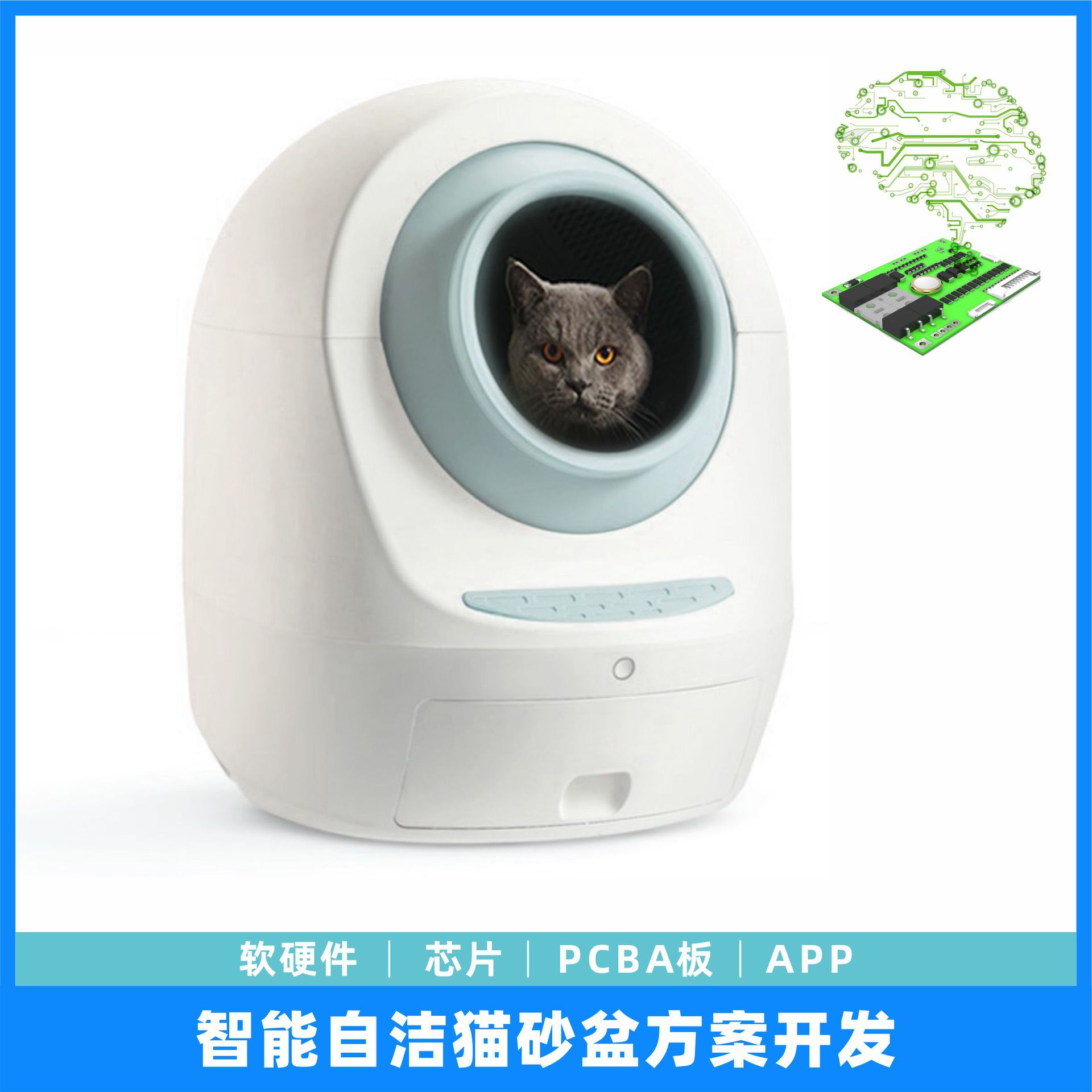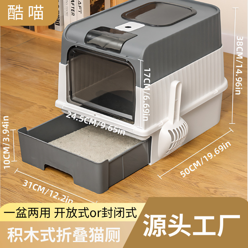Toilet kucing Semi tertutup semi-otomatis anticipratan, kotak sampah kucing pintar bau bersih sekop bass elektrik besar