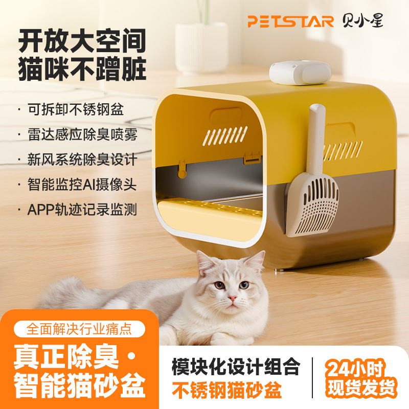 Stainless Steel Smart Cat Sandpot Kamera AI Speech Induksi Induksi Semprot Angin Baru Deodoran Toilet Kucing Besar