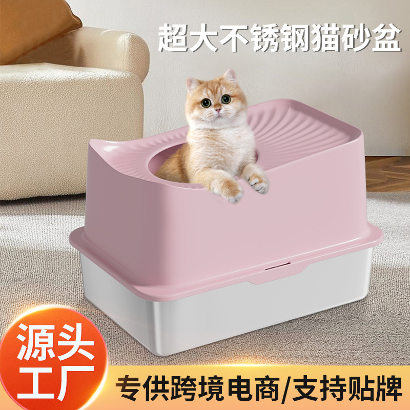 Kotak sampah kucing ukuran besar baja tahan karat toilet kucing baru semi-tertutup antipercikan mudah untuk dibersihkan perlengkapan hewan peliharaan