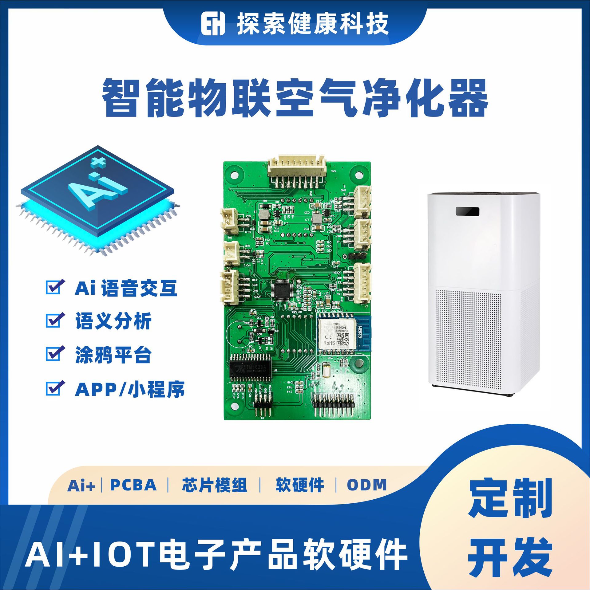 Pemurni udara anion Cerdas, kontrol panel R & D penghilang bau PM2, 5 deteksi AI IoT pembersih