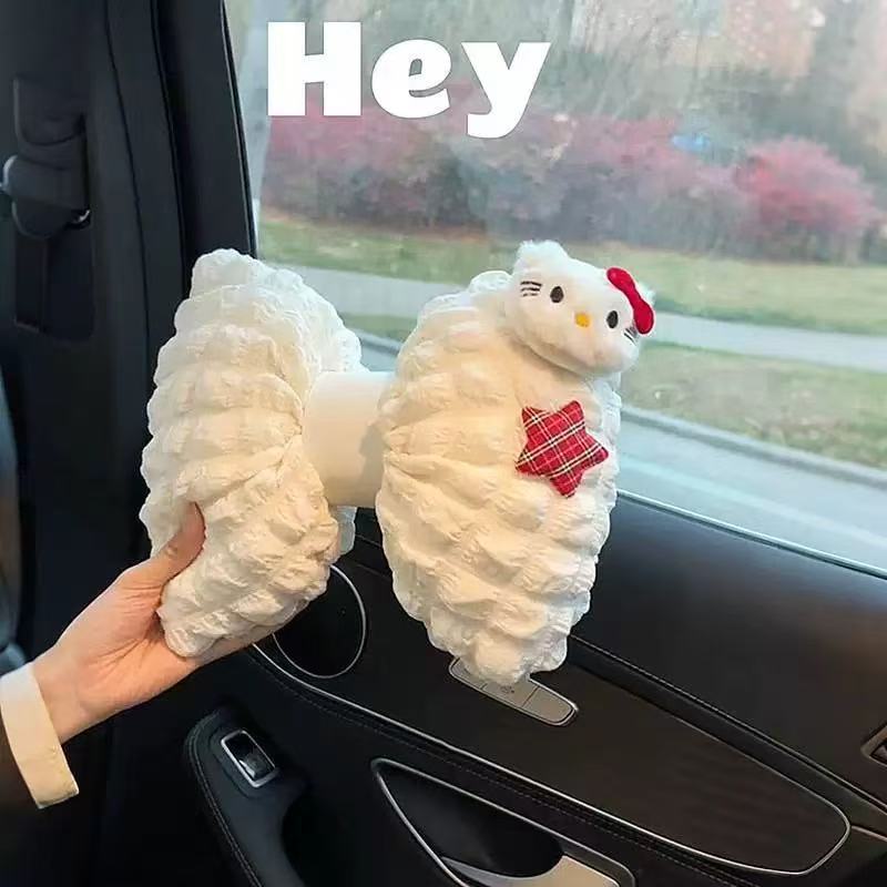 Kotak tisu mobil berbentuk anjing lucu, boneka anjing berbaring, kotak tisu gantung mobil, aksesoris interior mobil kartun