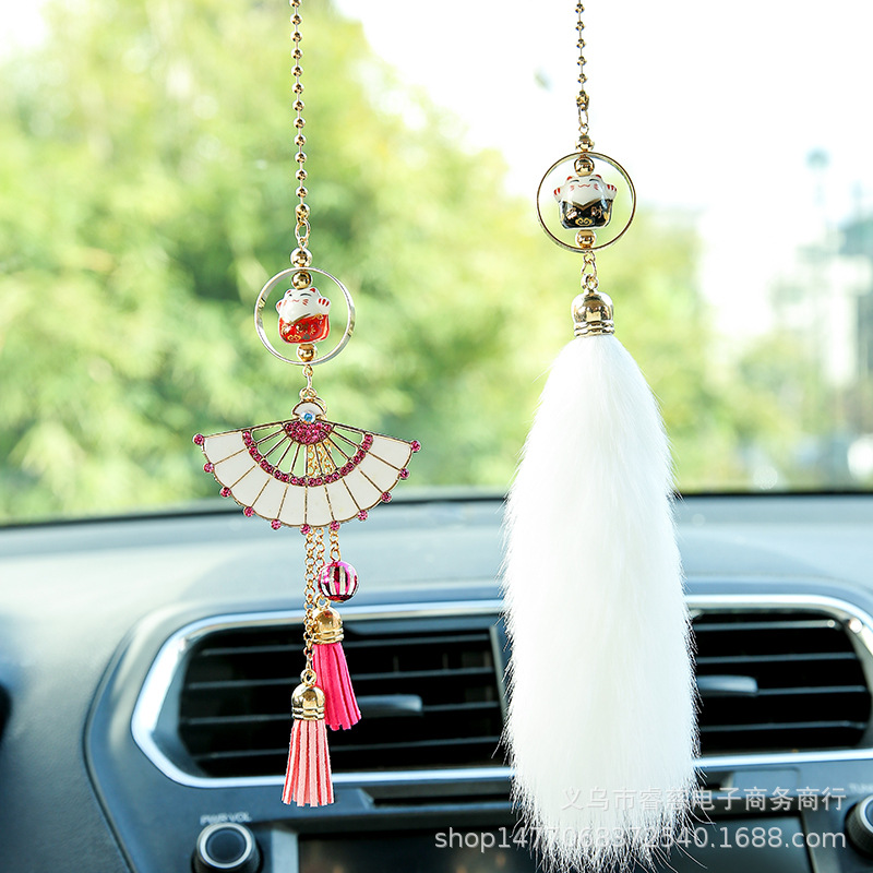 Liontin mobil liontin mobil kelas atas wanita bulu rubah kucing Beruntung liontin mobil lucu liontin mobil
