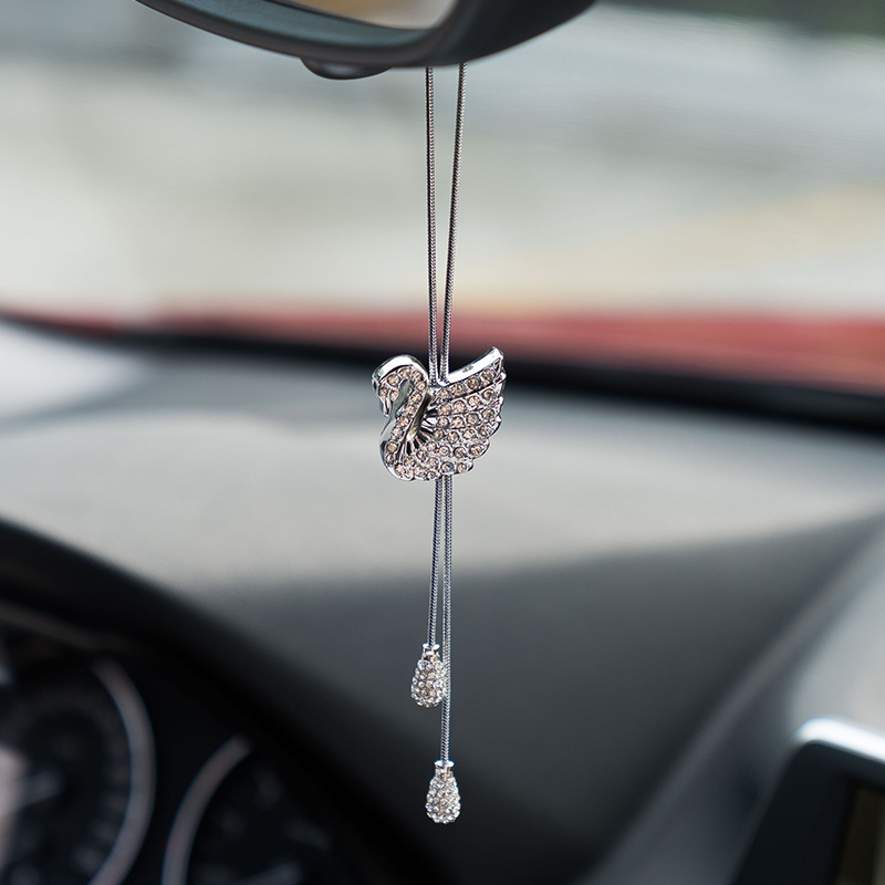 Liontin parfum dekorasi mobil, aksesori mobil liontin parfum dekorasi mobil angsa lucu, berlian imitasi