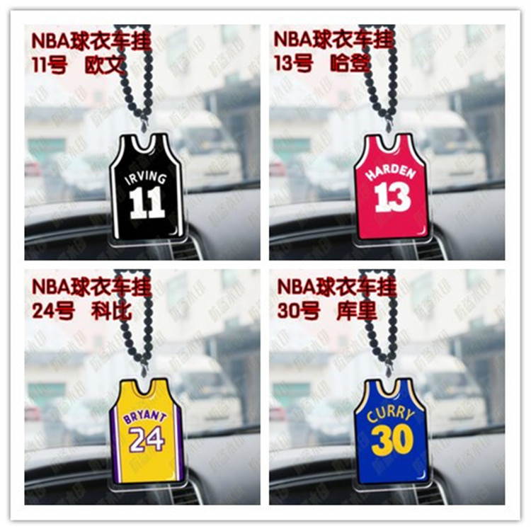 Liontin warna kaca spion gantung mobil akrilik fashion mobil liontin dua sisi kreatif jersey NBA Kobe James liontin
