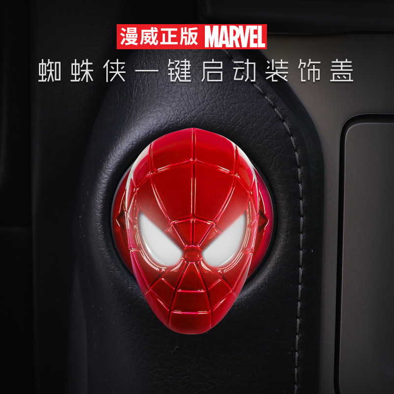 Marvel Spider-man stiker sarung pelindung, perangkat pengapian modifikasi interior mobil, sarung dekoratif satu klik tombol mulai