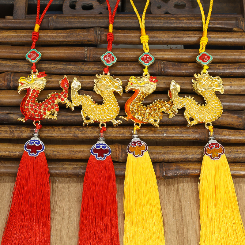 Liontin mobil naga Cina, liontin mobil Tahun naga Cina, awan rumbai berlian, liontin simpul Tiongkok Naga zodiak tiga dimensi