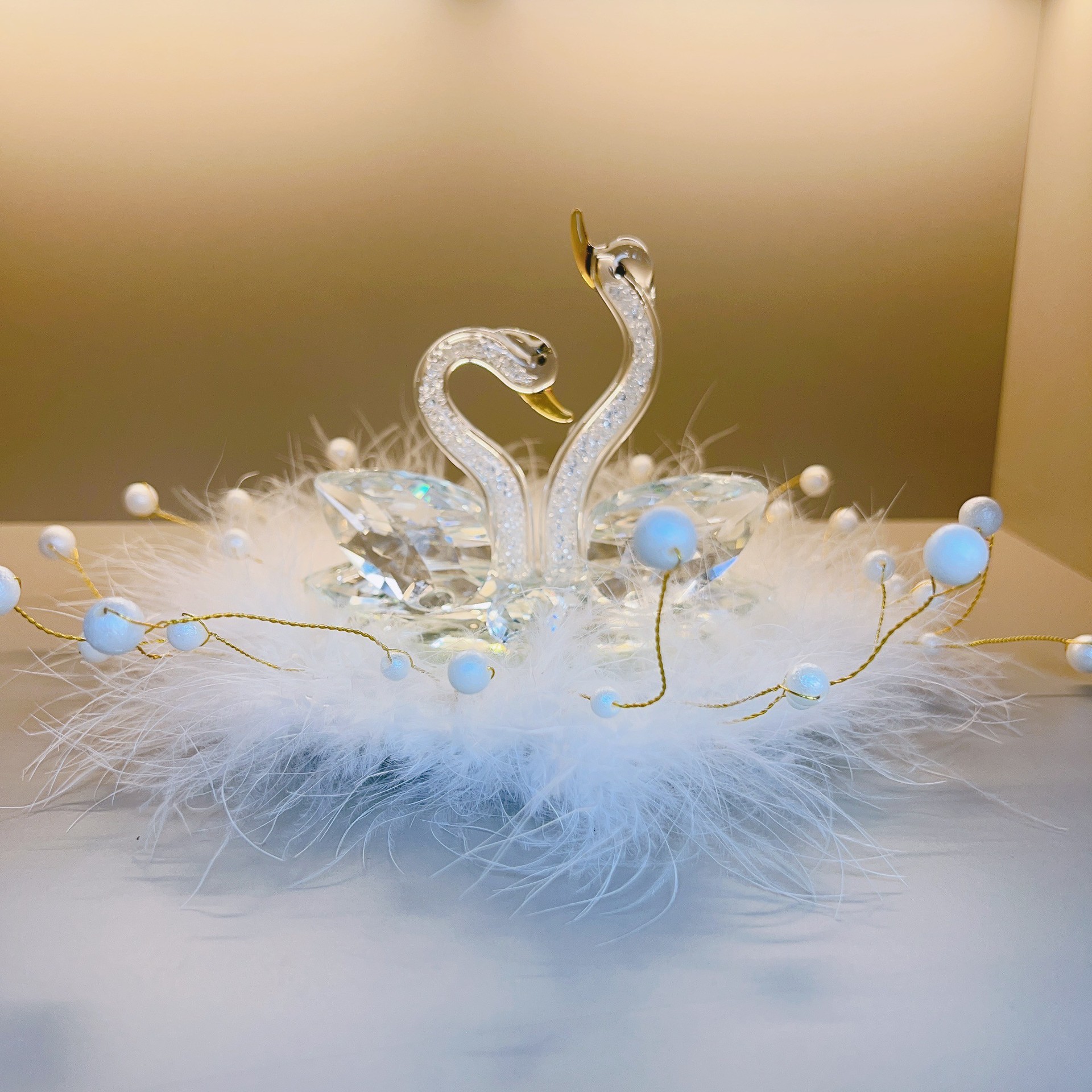 [Angsa CINTA] Dekorasi Mobil angsa kristal Dekorasi tengah konsol bulat sederhana rasa tinggi barang bagus