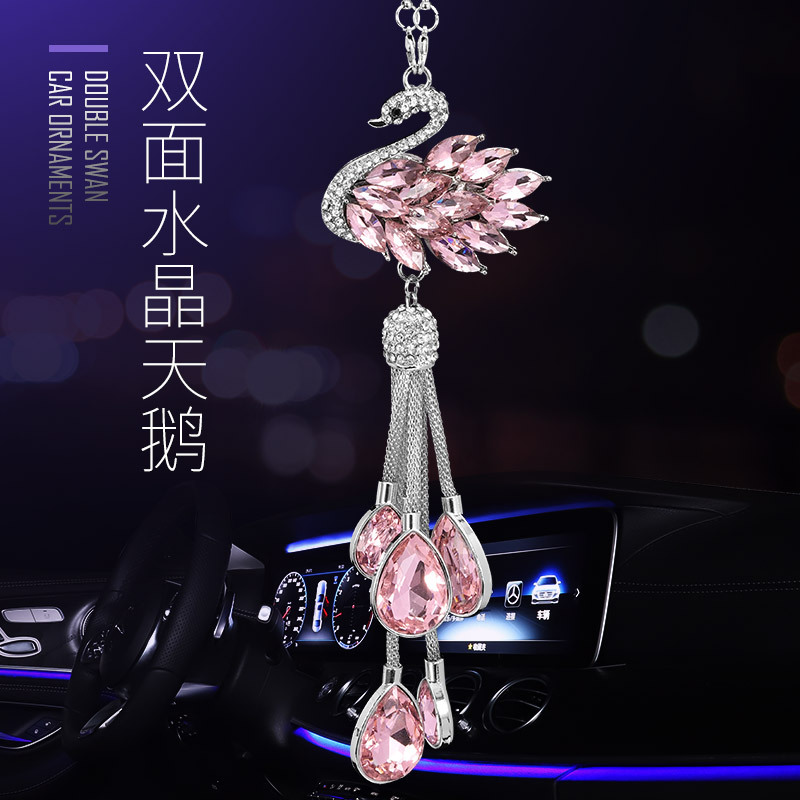 Liontin mobil kristal angsa wanita, Aksesori Mobil liontin kepribadian kelas atas lucu ornamen kreatif
