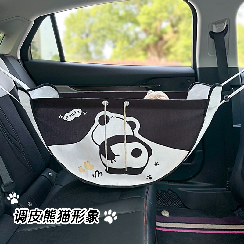 蓝雨车载收纳袋可爱熊猫汽车椅背悬挂式多功能车上杂物袋收纳挂袋