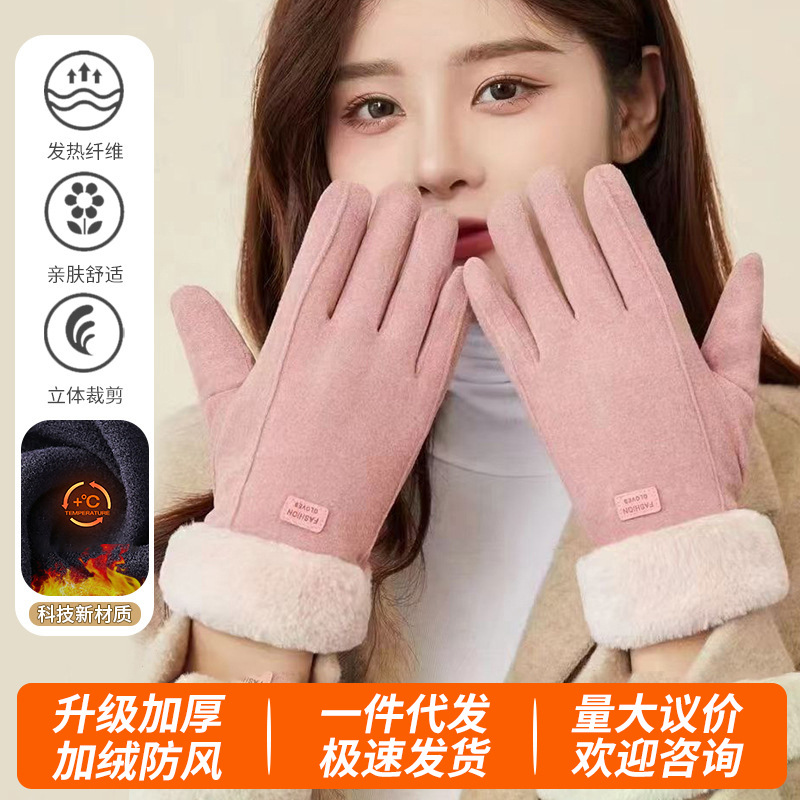 Sarung Tangan Wanita Musim Dingin Sarung Tangan Bersepeda Model Ekstra Tebal Ditambah Beludru Imut Musim Dingin Wanita Sarung Tangan Bersepeda