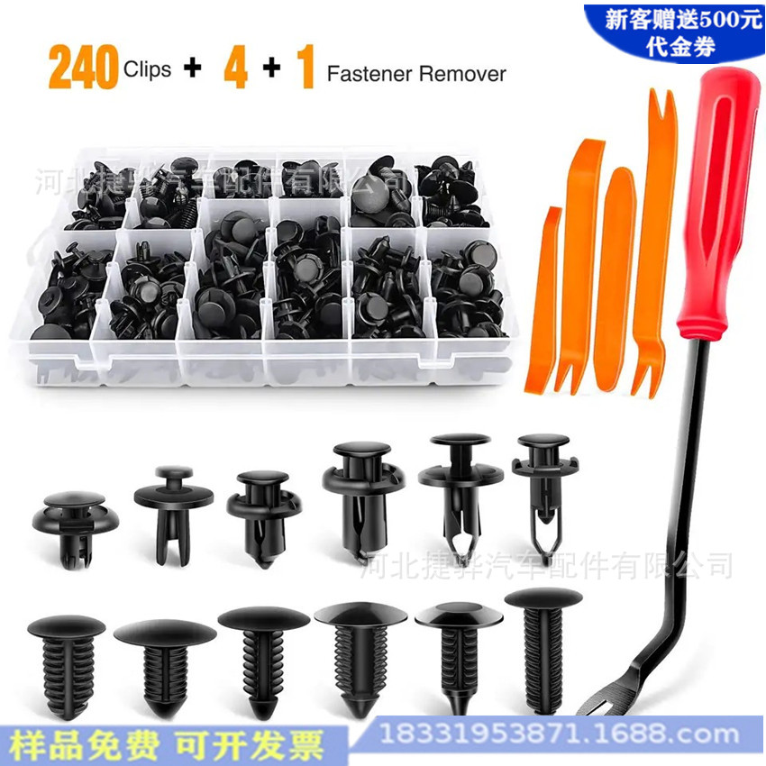 Gesper nilon gesper plastik 240 buah, gesper plastik kotak nilon cocok untuk Toyota Ford Honda, bumper, klip kuku inti