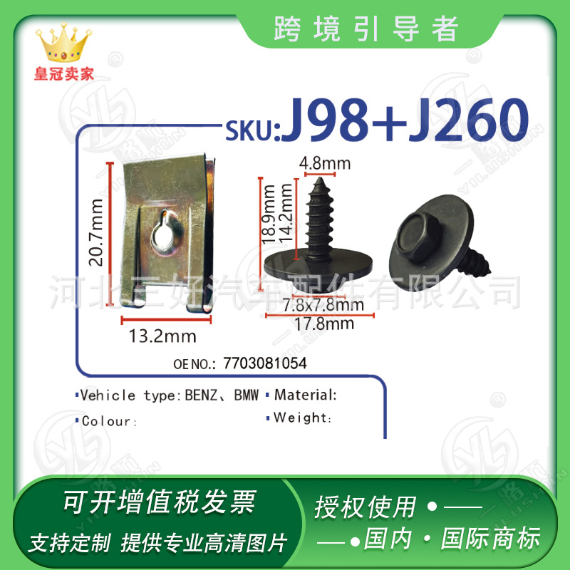 Cocok untuk Mercedes BENZ dekorasi mobil gasket kawat cepat tetap hitam lapis seng heksagonal kepala sekrup self-tapping J98 + J260
