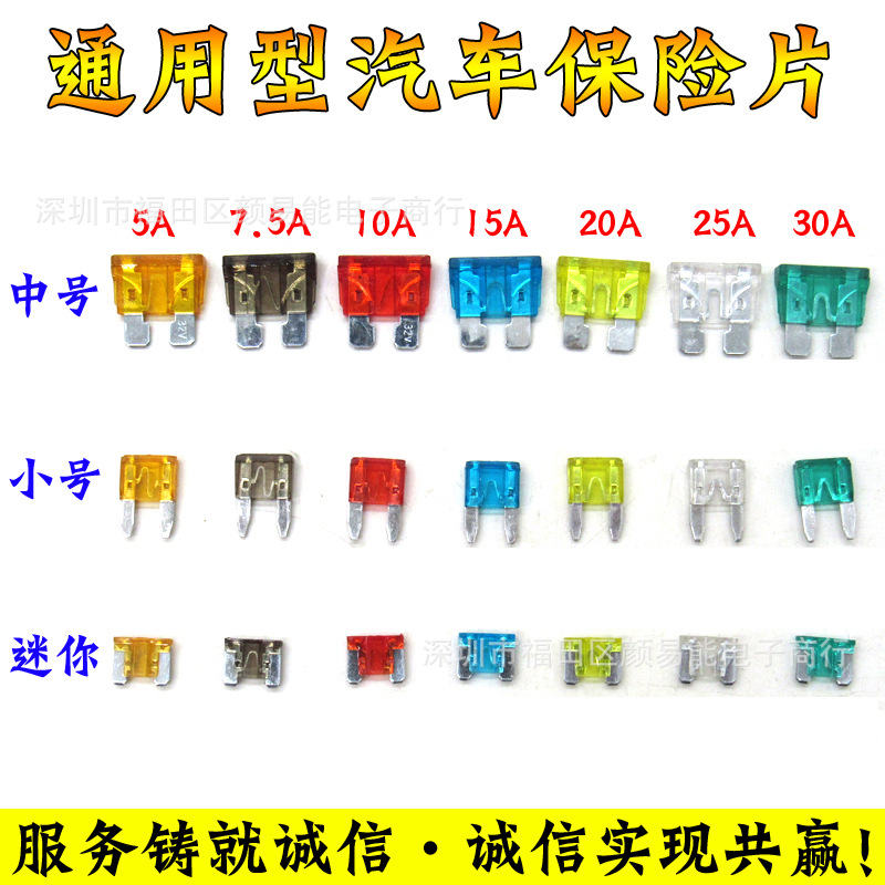 Sekring mobil ukuran kecil dan sedang, mobil ukuran mini 5A 7,5a serat kaca 15A 20A 30A 35A 40A
