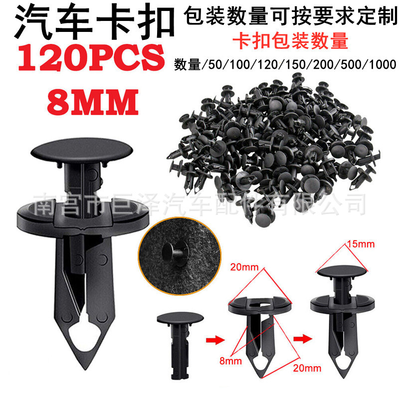 Pasokan lintas batas Aksesori Mobil 8mm lubang keling plastik bemper mobil gesper Fender 120 buah klip