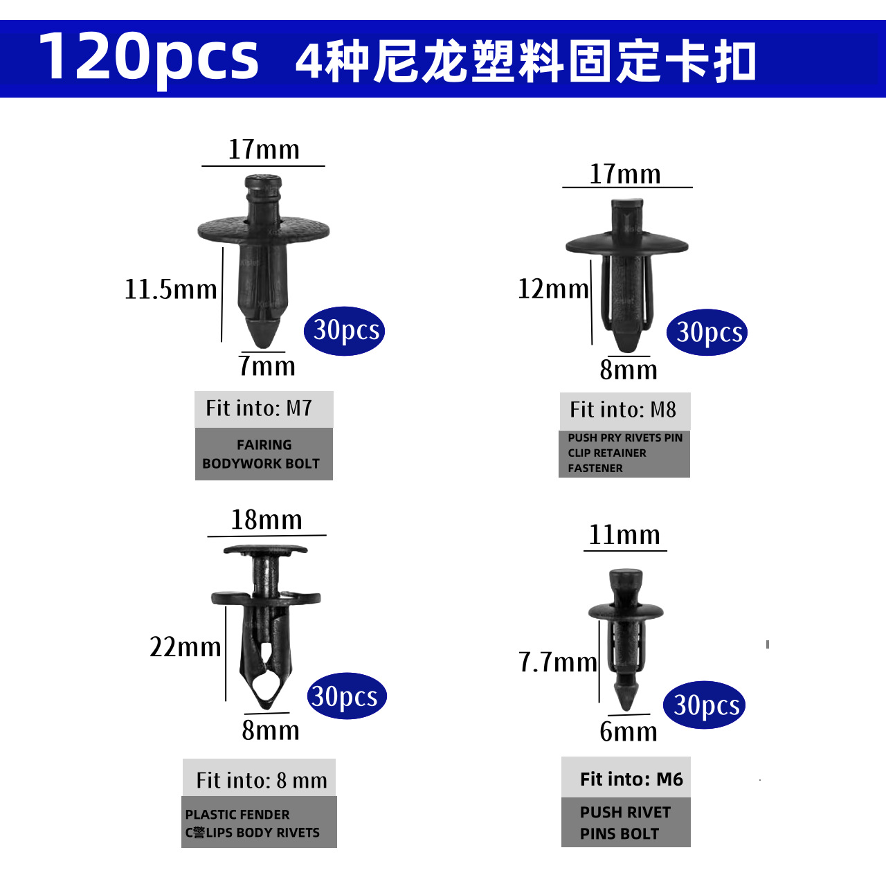 120pcs gesper plastik universal gesper ekspansi plastik 4 jenis gesper karet khusus untuk tetap bumper mobil