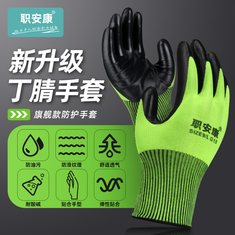 Sarung tangan berlapis nitril kesehatan, perlindungan tenaga kerja tahan aus dengan lem, sarung tangan kulit celup, perlindungan tanpa lem