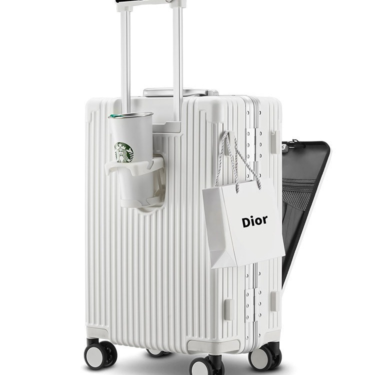 Koper bagasi pegangan lebar lintas batas untuk wanita dengan tempat cangkir, ritsleting anti-ledak ABS+PC, roda universal, kunci kombinasi, koper perjalanan bisnis.