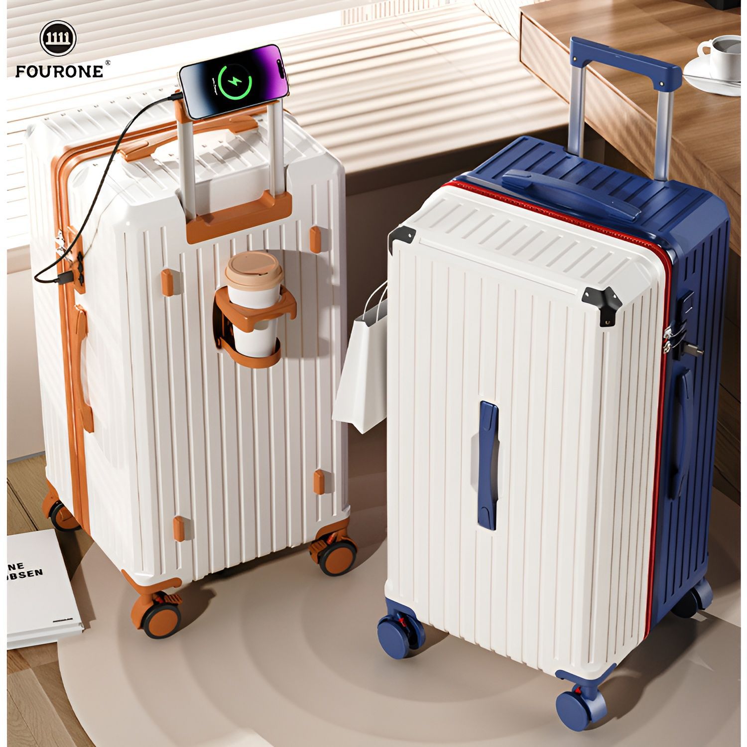 Batang tarik depan, bagasi bukaan depan gesper samping tutup tarik batang bingkai aluminium kapasitas besar pengisian daya usb dengan pemegang cangkir notebook