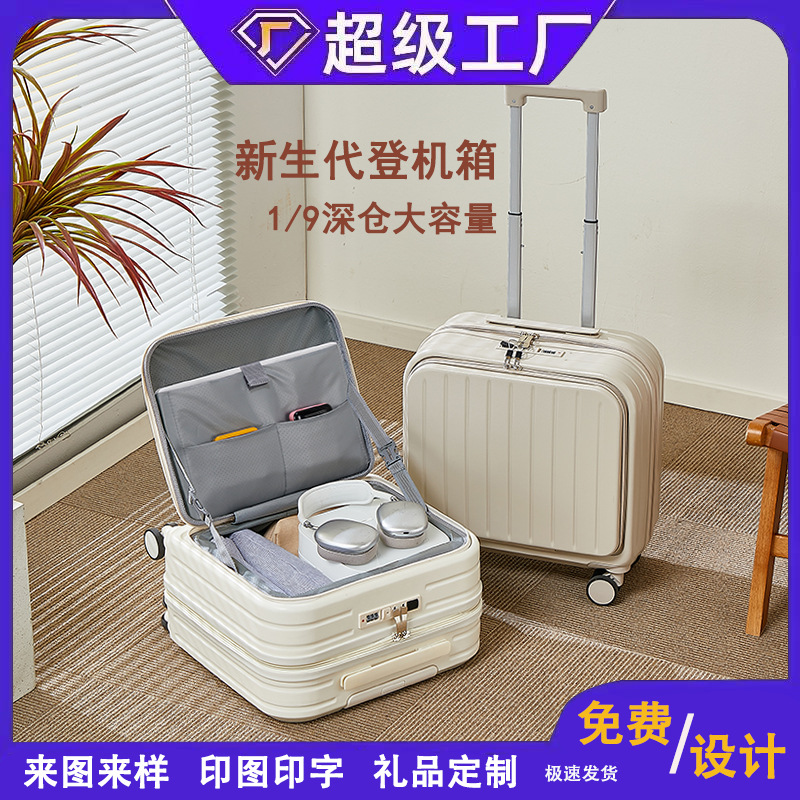 Koper troli wanita portabel, koper troli murid 20 inci, koper kata sandi, Multifungsi 18 inci, bukaan depan