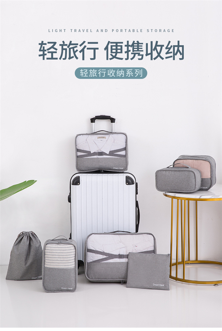 Tas penyimpanan perjalanan setelan bagasi kationik tas penyimpanan pengaturan pakaian perlengkapan rias tas tahan air 7 buah