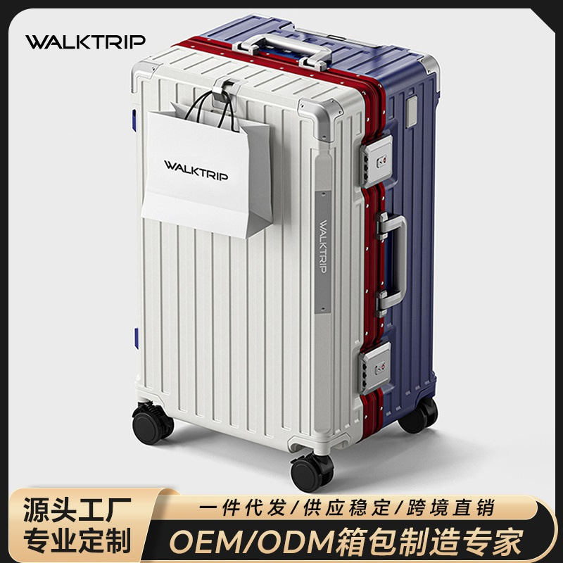 Tour WalkTrip koper kapasitas besar wanita, casing troli tebal, koper bingkai aluminium, kotak kunci ukuran besar untuk pria