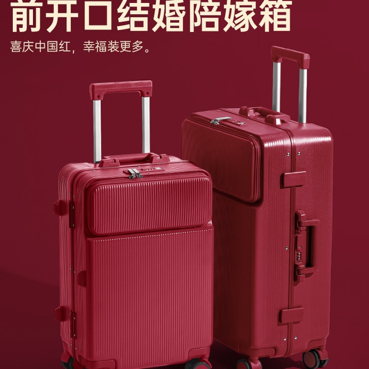 Sarung bukaan depan pernikahan merah pengantin wanita kotak troli pernikahan dengan ritsleting kata sandi kulit 20 inci 24
