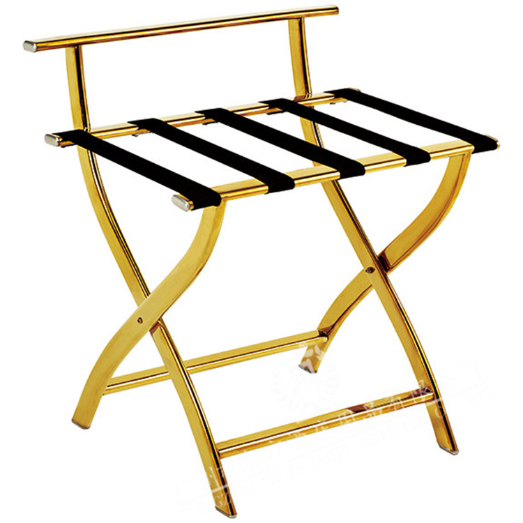 J-13B rak penyimpanan bagasi ruangan tamu rak bagasi hotel kamar rak nampan emas baja tahan karat dengan sandaran