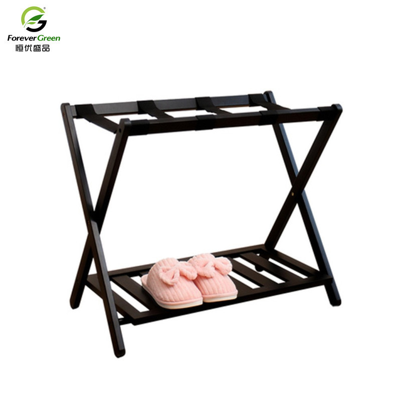 Rak Bagasi Hotel Rak Penyimpanan Kamar Tidur Lipat Kayu Bambu Rumah Tangga Warna Hitam Rak Penyimpanan Bagasi Rak Penyimpanan Ganda