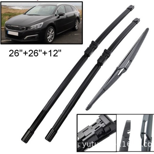 Cocok untuk Peugeot 508 SW MK1 2010-2018 set perakitan wiper kaca depan dan belakang 26 + 26 + 12