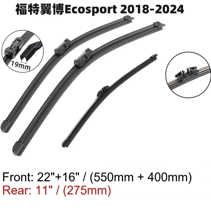 Cocok untuk Ford Yibo Ecosport II bilah wiper kaca depan dan belakang mobil 2017-2024