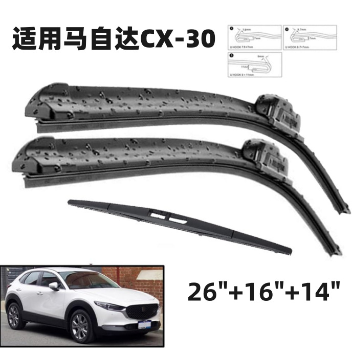 Cocok untuk Mazda CX-30 2019-2024 wiper jendela depan dan belakang pisau wiper pengiriman satu bagian e-commerce lintas batas