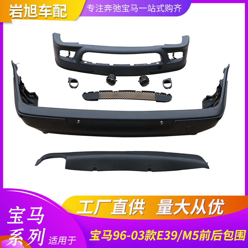 Cocok untuk BMW E39 dimodifikasi M5 bumper depan dikelilingi bumper belakang jaring tengah lampu kabut bingkai kisi bumper depan bumper belakang