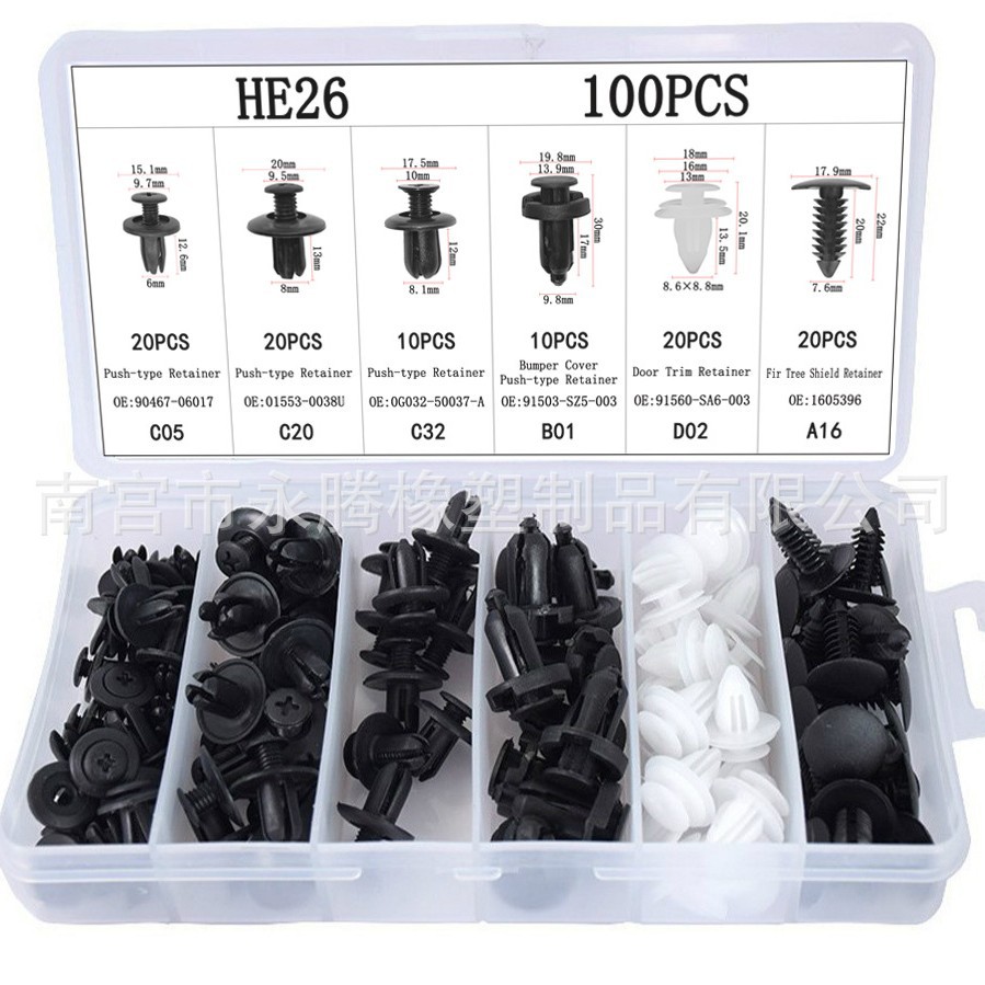 [Produk ledakan] 190pcs tas campuran gesper plastik universal mobil paku keling bumper fender