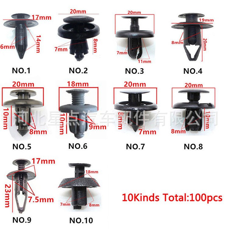 100 buah klip pengencang mobil hibrid, retainer keling mobil untuk panel pintu Fender bumper