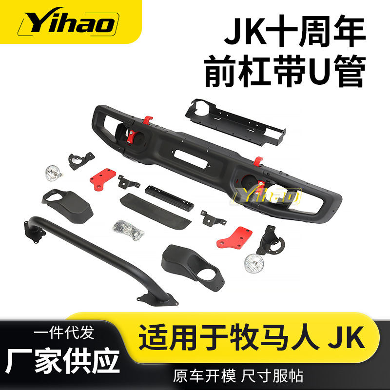 Grosir Cocok untuk Wrangler Front Bar Spot JEEP Wrangler JK Modifikasi Aksesoris 10 Ulang Tahun Front Bar Dengan Tabung U