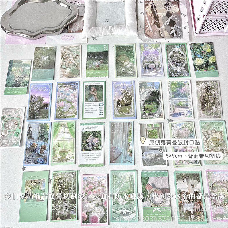 Mint asli Mambo hijau tanpa atribut stiker INS canggih film matte kemasan hadiah bahan kemasan stiker penyegel