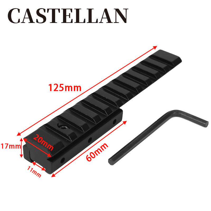 Rel panduan penambah tinggi 11 putaran 20mm, braket rel panduan 125mm, rel panduan penambah tinggi, bahan Aloi aluminium, dasar cermin penglihatan