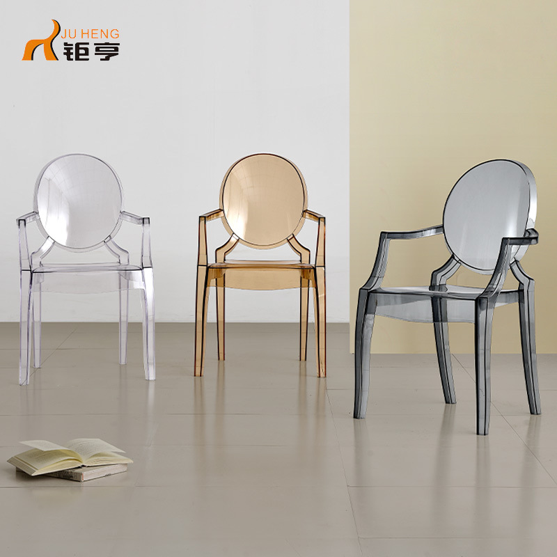 Kursi plastik akrilik transparan, sandaran tangan plastik kristal ruang makan makeup kursi belakang kreatif baru Nordic kursi modern