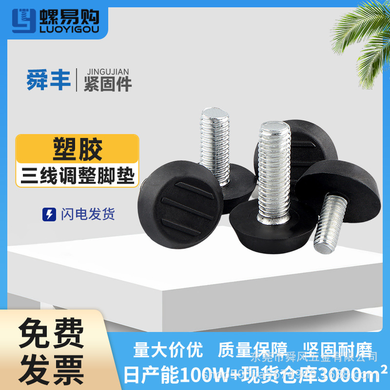 Produsen furnitur lembaran besi Sol hitam, furnitur kaki dapat disetel bantalan kaki plastik antiselip metrik Inggris