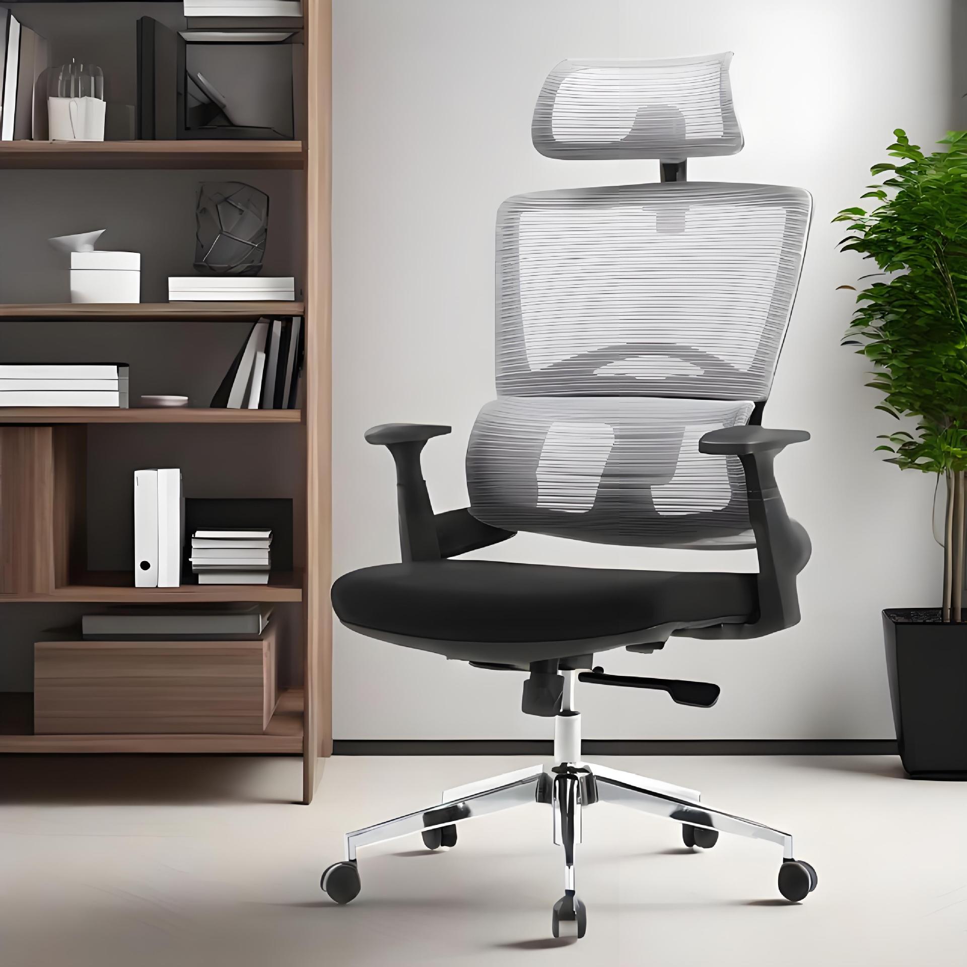 Kursi kantor ergonomis untuk belajar di rumah, kain jala bernapas untuk duduk lama, ketinggian dapat diatur, roda, bantalan busa kepadatan tinggi.