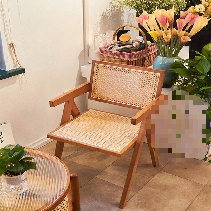 Kursi Rotan Rumah Tangga Balkon Homestay Hotel Kursi Rotan Sederhana Kursi Gaya Tenang Kursi Kayu Solid Sandaran Tangan Chandigarh g ^