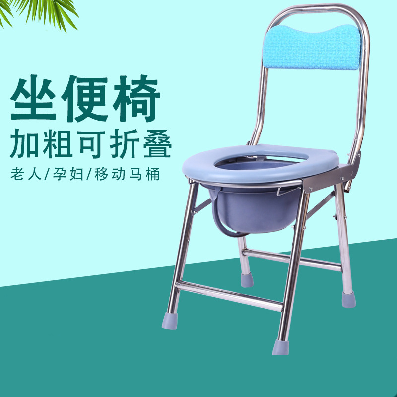 Kursi toilet lipat besi tahan karat wanita hamil tua toilet seluler sandaran punggung tinggi bangku toilet pasien Rumah