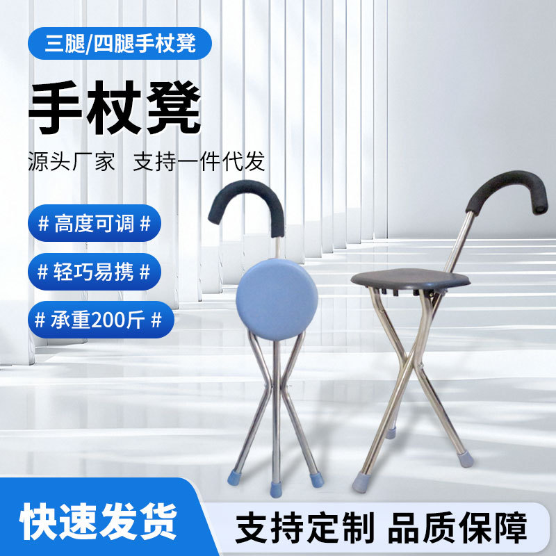 Pasokan pabrik multi-fungsi baja tahan karat lipat kruk dengan bangku kaki tiga tangan bangku orang tua mountaineering tongkat berjalan