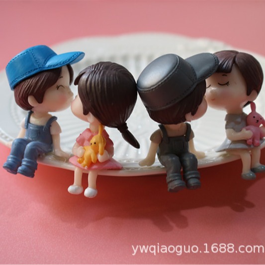 Bangku lanskap mikro pasangan PVC dekorasi figur boneka gantungan kunci pasangan liontin Dekorasi kue grosir