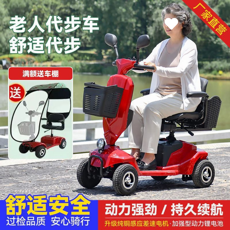 Skuter orang tua ringan, lipat elektrik empat roda kecepatan ringan travel Portabel baterai mobil tua