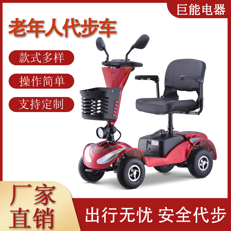Kursi roda listrik langsung pabrik lipat skuter empat roda penggerak belakang ringan untuk orang tua dan cacat