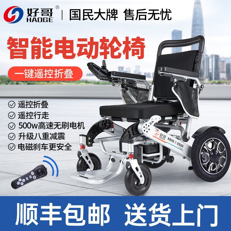 Skuter Empat Roda untuk Orang Tua Penyandang Cacat Haoge Kursi Roda Listrik Luar Ruangan Ringan Lipat Bisa Berbaring Cerdas Otomatis